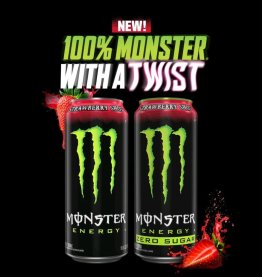 - Monster Strawberry Shot - Ať už OG verze s cukrem nebo verze bez cukru, oba mají společné to, že chutnají jako originální zelený Monster lehce doladěný jahodovou příchutí. Obe verze se měly objevit na trhu v USA už v lednu 2026 a taky se tak stalo.