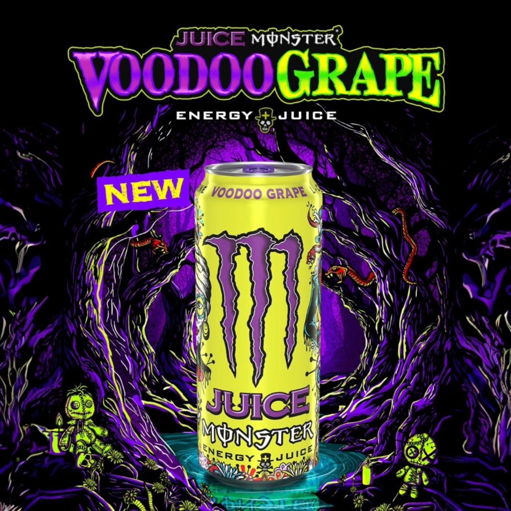 - Monster Juice Voodoo Grape - Návrat hroznového vína od Monsteru se měl uskutečnit v únoru, první plechovky ovšem přinesl už lednový test v New Orleans. Džus z bílých, červených i tmavě fialových hroznů odrůdy concor, 7,7 g cukru na 100 ml a podle nás ta top novinka letošního roku.
